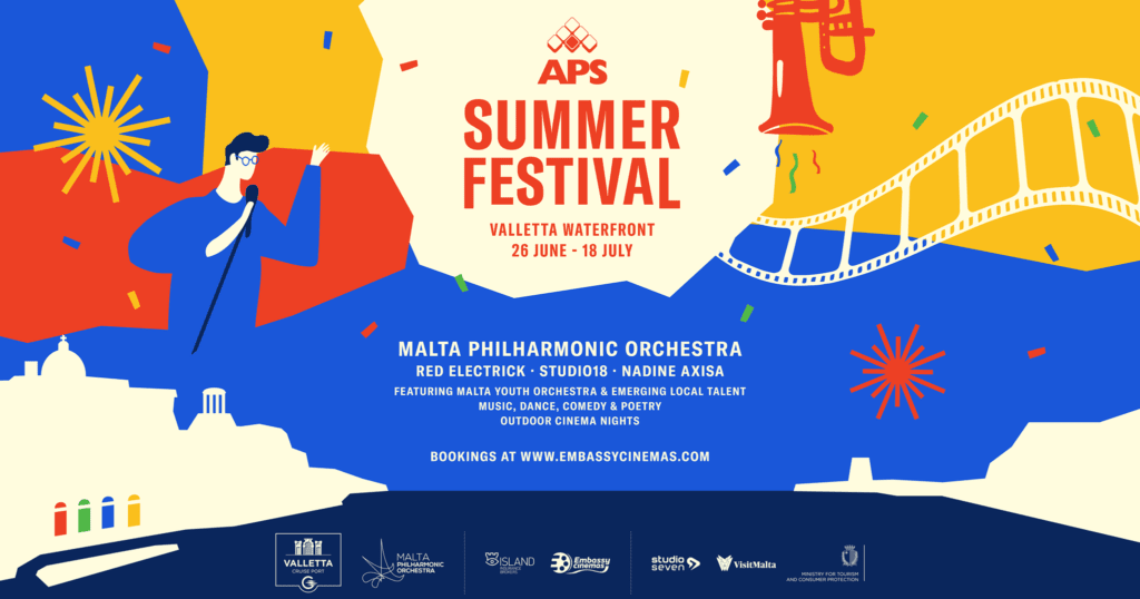 The APS Summer Festival is produced by the Malta Philharmonic Orchestra and the Valletta Cruise Port and supported by the Malta Tourism Authority, Studio Seven, Embassy Cinemas Valletta and Island Insurance Brokers.